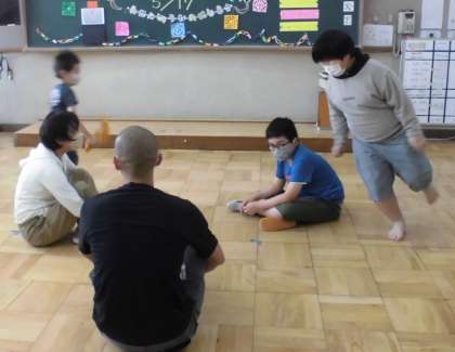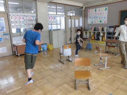 ろ組のみんなと先生たちとで,ハンカチ落としにいす取りゲーム,フルーツバスケットをして盛り上がりました。