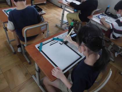 今日は,初めてお習字の学習をしました。