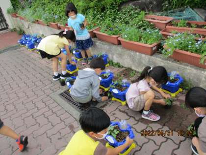 「まびく」という言葉を伝えた後,芽をお引越しさせるんだよ,と伝えると,抜いてしまったら捨てちゃうわけではないとわかり,ホッとしたようでした(^^)