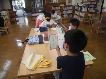 休み時間にも図書室を利用する子が多く,本に親しんでいる3年生です。