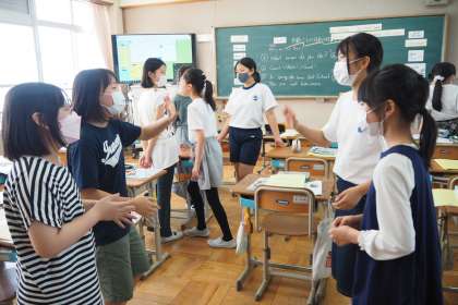 今日は,外国人観光客グループと日本人ガイドグループに分かれて,日本の行事を紹介するactivityをしました。「Wher are you from?」などこれまでに習った表現もすぐに使えるところが6年生の凄さです。最後の10分間で日本にある行事を調べました。地域で様々な行事があるので,どんな行事を伝えてくれるのか楽しみです。