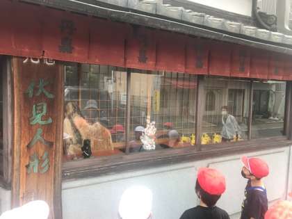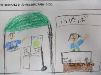 町たんけんも3回目。今日のテーマは「お店めぐり」でした。子ども達がおすすめしてくれたお店を順番にまわっていきました。お店の中には入れませんから,それぞれのお店を外からのぞかせてもらって,少しだけお店の雰囲気を味わわせてもらいました。それぞれのお店に行ったことのある人も初めての人も,もっとじっくり見学したかったようでした。また子ども達の案内で,お家の方もお店巡りをしてあげてください。