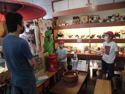 今日は,数名のグループでの町たんけんでした。今日の行き先は「伏見人形のお店」と「お茶のお店」でした。前もって子ども達が作っておいた質問をおたずねして,教えていただいたことをメモしたり,写真をとらせていただいたりしました。どちらのグループの子たちも一生懸命にお話をうかがったり,お店の中を見学させてもらっていました。初めての体験にわくわくの子ども達でした。