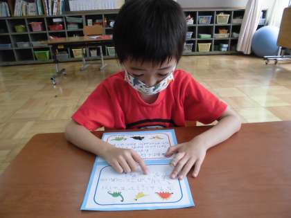 ハッピーバースデーの歌で始まり,恐竜カード合わせやハンカチおとし