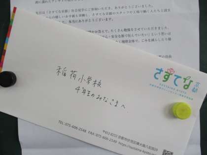 さすてな京都に社会見学に行ったあとに,ごみに関する新聞を書きました。そして,その後,お礼のお手紙も一緒に郵送したところ,本日返信をいただきました。また,お手紙だけでなく,自由帳もいただきて子どもたちも大喜びでした。