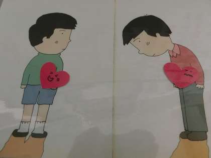 毎日生活する中で,心はわくわくしたり,ドキドキしたり,がっかりしたり,悲しくなったりと様々に変化するけれど,自分のせいで相手の心を傷つけたことに気づいたら,勇気を出して,心を込めて「ごめんなさい」と謝りましょう。