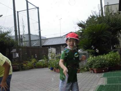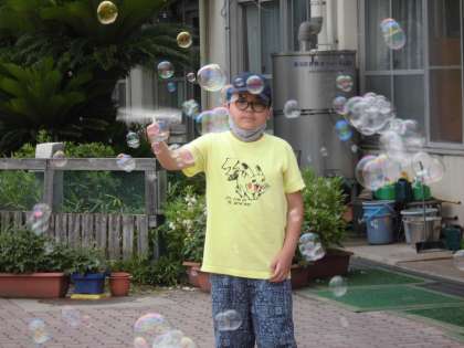 ストローでもうちわでも沢山のシャボン玉ができて、みんな大喜び。