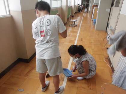 始業式の後,1か月使っていなかった教室と廊下をみんなできれいにしました。友だちと協力しながら頑張って掃除をしていました。