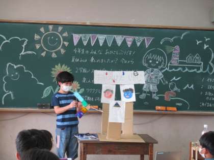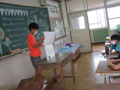 夏休み明けて、みんなが休み中に頑張った作品や自由研究を発表しました。一人一人自分の興味があるものを発表していて、聞いているみんなもとても楽しそうでした。作品は次の参観日まで飾っていますので、ぜひご覧ください。