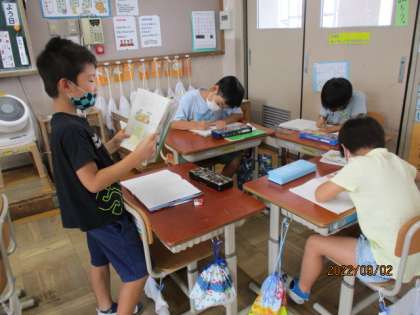 国語の学習で,友だちにことばだけで「みちあんない」をするという活動に取り組みました。まず教科書の教材を使って「正しく道案内するために大切なこと」をみんなで確かめました。そして実際にグループで「案内する人」と「聞く人」に分かれて,かわりばんこにやってみました。「聞き手」のときは,メモをとりながら聞きました。1学期に学習したメモの取り方を思い出すこともできていました。自分の道案内で,友だちが正しい場所を見つけてくれると,思わずうれしそうな笑顔を見せていた子どもたちです。