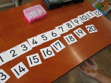 算数の数字のカードを並べて,10より大きい数について学習しています!