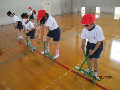 体育では,三角竹馬や一輪車などのを使って学習しています。