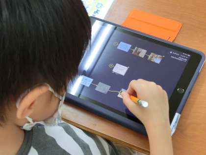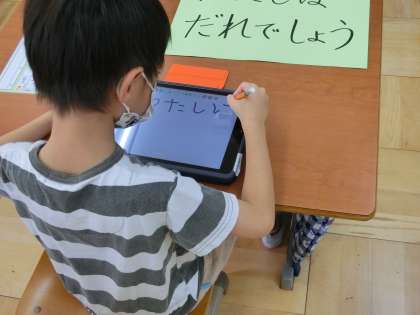 タブレットの操作に親しんだり、文字を書く練習をしたり、問題にふさわしい言い回しを練習したりと、学習内容は満載です。