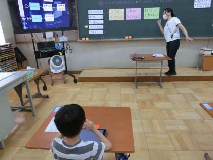 今日の参観授業では、タブレットの機能を使って、クイズをつくるところを観ていただきました。