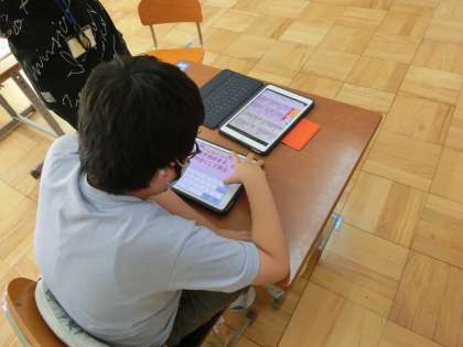 ロイロノートを使っての自己紹介クイズを作ったり、あいさつの原稿を考えながらタブレットで打ち出して、本番でうまく言えるよう練習をしました。