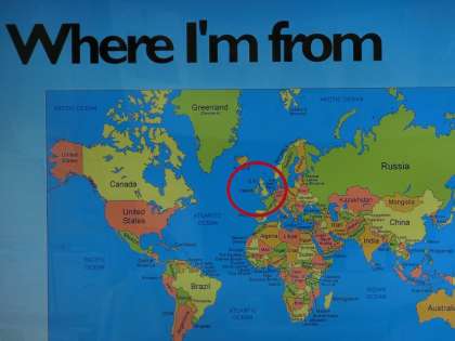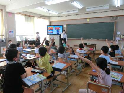 今日から新しいALT(外国語学習アシスタントの先生)のバーリー・エリナー先生が来てくださいました。