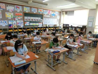 「足の裏を地面にしっかりつけて、よい姿勢で書きましょう」と声かけすると、みんなすばらしい姿勢で、がんばっていました。