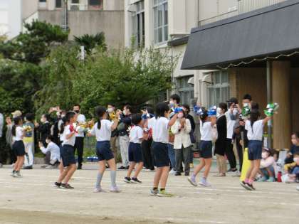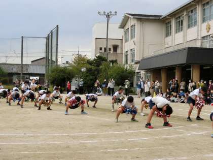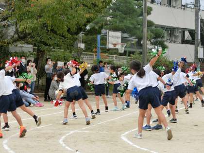 腕に、キラキラのポンポンを付けて元気いっぱい踊ります。