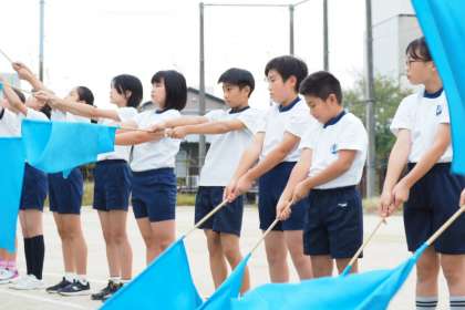 5年生は体育科学習発表会で初めてのフラッグ体操となりました。