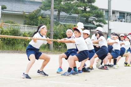 今年度の体育科学習発表会では、団体競技が玉入れから綱引きに変更となりました。