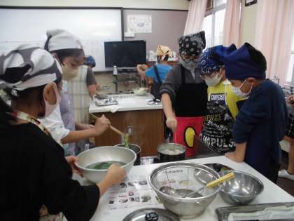 家庭科の調理実習で「ゆでいも」と「青菜のおひたし」作りに挑戦!