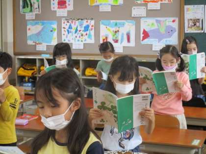 国語の学習で「くじらぐも」というお話を読んでいます。
