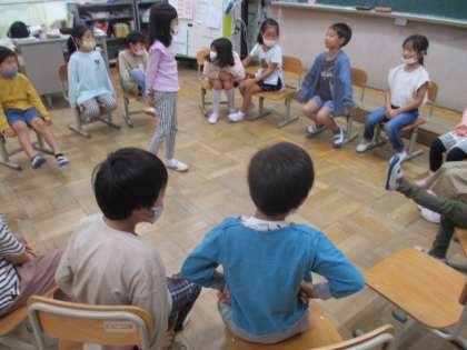 みんなあそびの練習として,今回はフルーツバスケットをしました。
