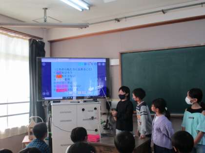 社会科の学習で伝統的な日本の祭り『祇園祭』について調べ学習をしていました。そして昨日と今日がその発表会です。班での調べ学習は2回目になるので、模造紙に限らず、発表の形式は自由にしました。各班、スライドを使ったり、劇をしたり、紙芝居をしたり、クイズをしたりと工夫がされていました。