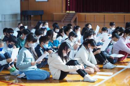 今日の昼休みにたてわり読み聞かせの説明がありました。
