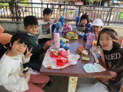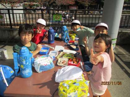実は楽しく園内を見学しながらも,「早くお弁当食べたいなあ」という声はちらほら聞こえてきていました。それぐらい子ども達にとっては,楽しみで仕方ないお弁当だったのですね。