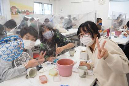 みんな真剣です。マグカップの底にこだわる子どもも。楽しい時間です。