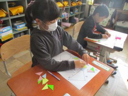 色板を使って,色々な形を作ることを楽しんでいます。