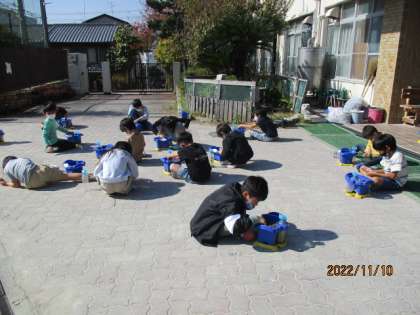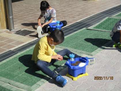 ミニトマトのときのことを思い出したのでしょう。「もう名前は決めた!」「みどり色になるからグリーンっていれよかな。」など早速ネーミングを考え出す子達もいました。