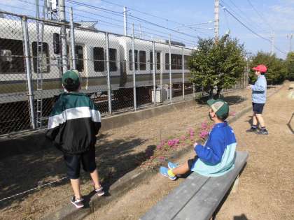 すぐ横に電車が走っていました。