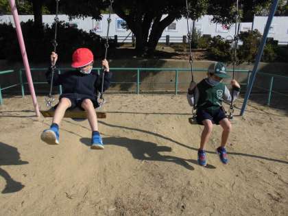帰り道にある公園で、深草小学校のお友達と少し遊んで帰りました。