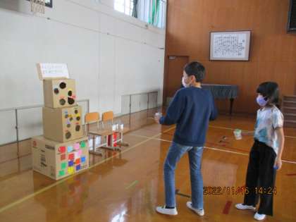 自分たちのお店が整うとまわりが気になりだし,そのうち「ぼくらもやってみたいなあ。」という声があちこちから聞こえてきました。そこで,「お店の品物をこわさないようにそっと遊ばせてもらうことにしようか。」と伝えると,大喜びで,1年生より一足先に,楽しんでいた子ども達でした。