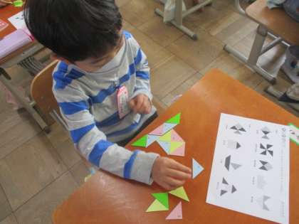 「この形は色板を6枚使ってできたよ!」