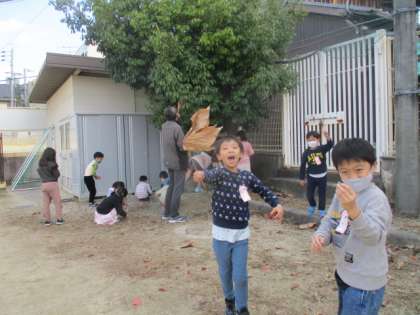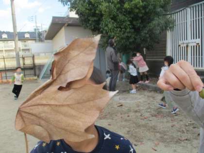 「見て見て!こんな綺麗な落ち葉があったよ!」