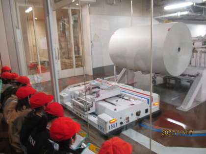 1トン以上の重さの紙から新聞がつくられるところを見た時に「すごい!」とつぶやきがありました。