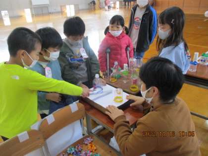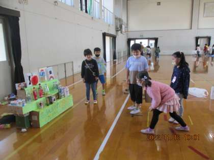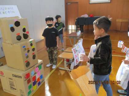 それぞれのお店をまわっていると,「もう少しゆっくりするといいよ。」「そっとうごかして。」「おめでとう」などなど,1年生に2年生の子ども達が色々な声かけをしてくれている姿が見られました。みんなステキなお兄さん,お姉さんでした。
