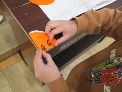 そのあと,教室の中で「直角さがし」に挑戦しました。「わあここにもある。」「みいつけた!」などどんどん見つけていた子ども達でした。毎日過ごしているこの教室にいっぱいの「直角」が隠れていたことに気づいた子ども達でした。