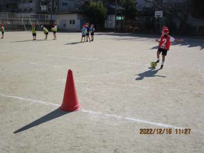 ボールをよく見て,体をゴールの方に向けて,シュートを決めていく子どもたちでした。