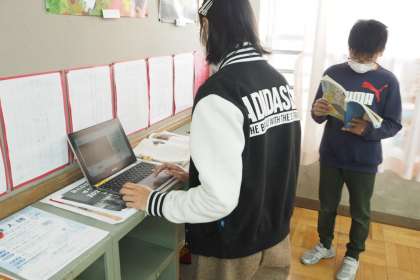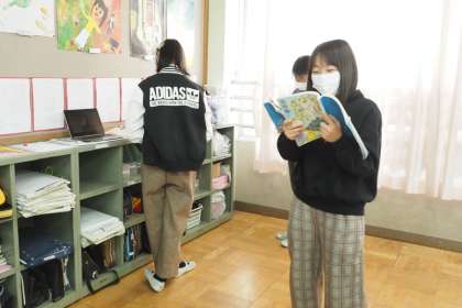国語の学習は柿山伏が終わり,音読発表の練習をしています。
