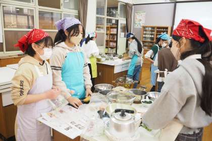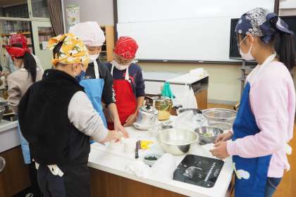 16日の金曜日に家庭科の学習で調理実習を行いました。