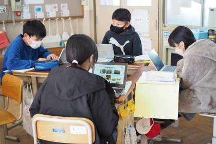外国語の学習では,「This is my town.」の学習で京都市の町の様子を紹介しています。パフォーマンステストでは,伏見区以外の中京区・西京区・右京区・左京区にある建物や見られる景色を紹介します。今日はALTのエリナー先生も来られ,英語でどのように伝えるか質問する子どもたちでした。