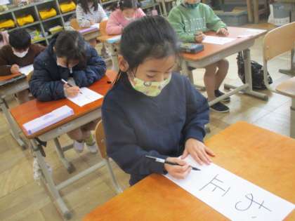 「お正月」という字をお手本を見ながら