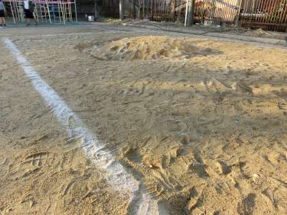 「先生、砂場に雪が積もっています!」