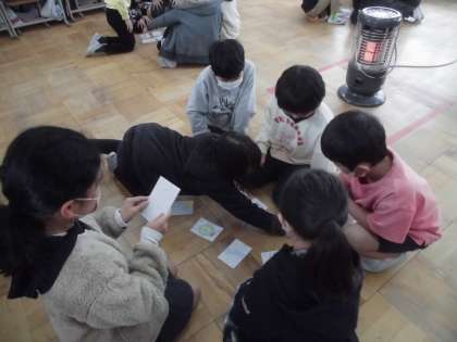 今日は、そのかるたを使って、ミニかるた大会をしました。