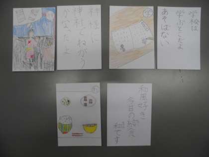 国語科の学習で、漢字の音読みと訓読みを使ったかるたを作りました。