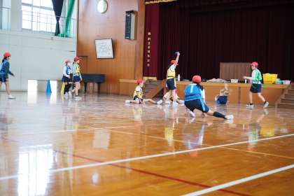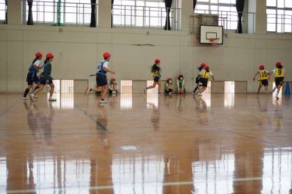 最後の黄VS青の試合では,ボールを一発キャッチしてすばやくゴールへ走り抜ける姿が見られました。タグもしっかり獲ることができ,見ている赤と緑も「おもしろい!」の一言。